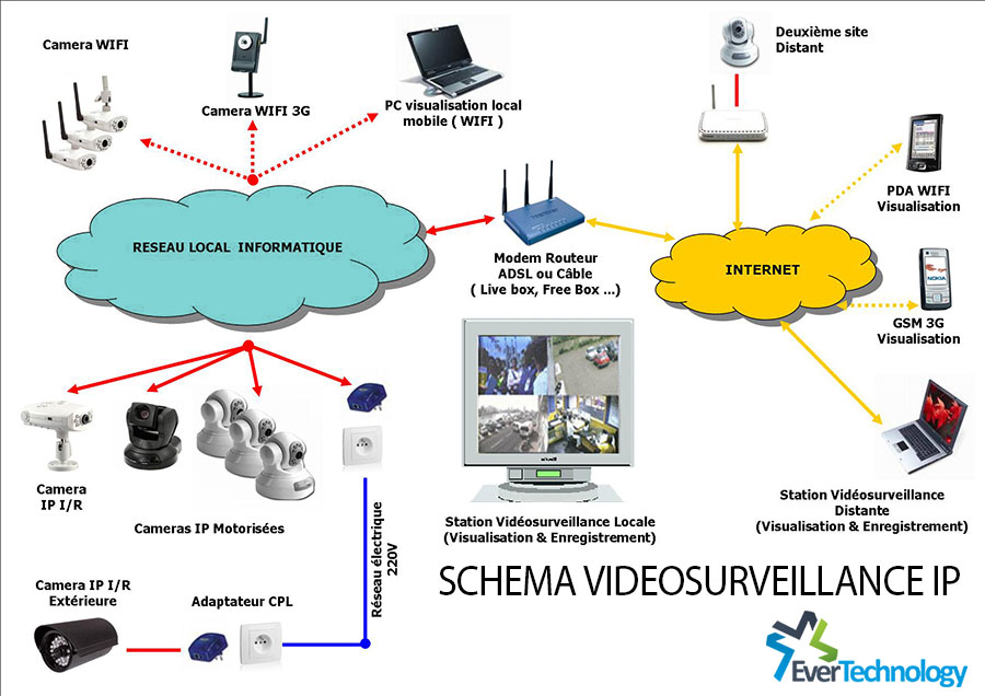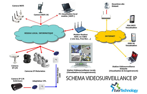 Ever Technology vous assure l'installation des caméras, la configuration du DVR (supporte jusqu'à 16 caméras simultanées) connecté à l'Internet et entièrement compatible avec les smartphones et les tablettes ( iOS et Android).Installation des caméras de surveillance IP