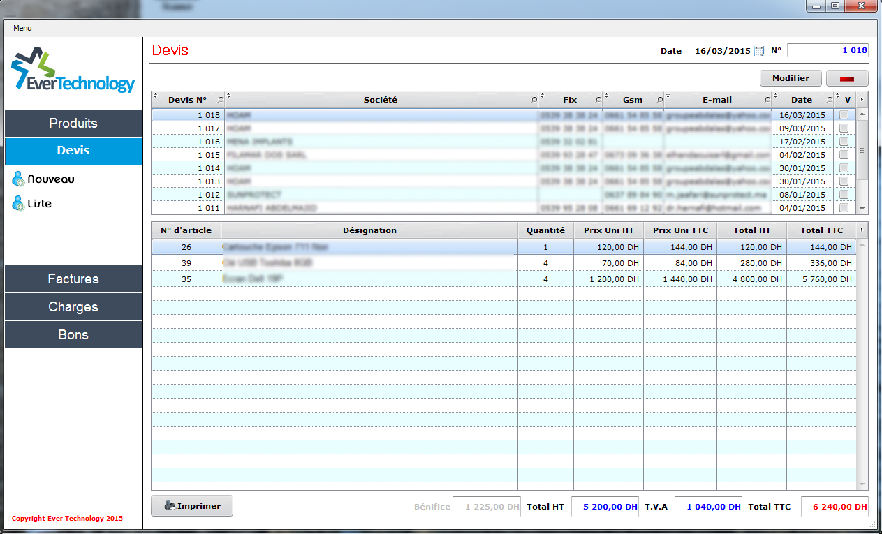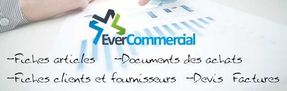 EverCommercial est un logiciel de gestion commerciale, de facturation et de devis qui convient parfaitement aux équipes de commerciaux au sein de grandes structures ainsi qu’aux PME-PMI et auto entrepreneurs. C’est un logiciel simple et facile d’accès qui ne nécessite pas de connaissances particulières en informatique. Immédiatement opérationnel, EverCommercial peut fonctionner en mode collaboratif (par réseau) et permet donc de partager toutes les données.